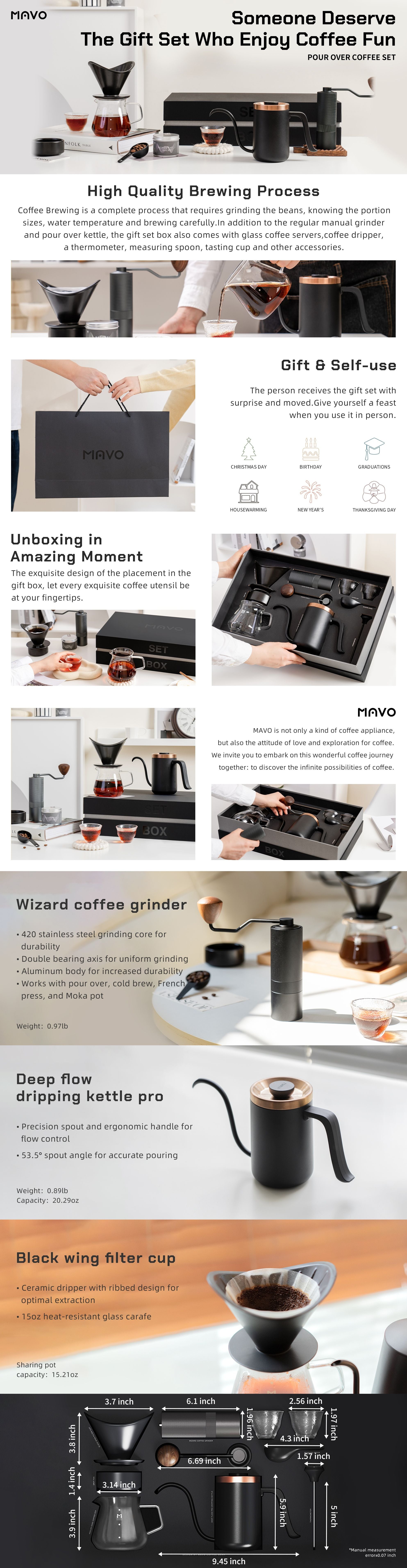 - Fully equipped gift set: This set not only fully considers the performance and material craftsmanship of each product, but also perfectly matches the design aesthetics, allowing users to experience the fun of freshly ground hand-brewed coffee and enjoy high-end coffee The appliance brings multiple visual and tactile enjoyment. It is the best choice for yourself or friends and relatives, both practical and special